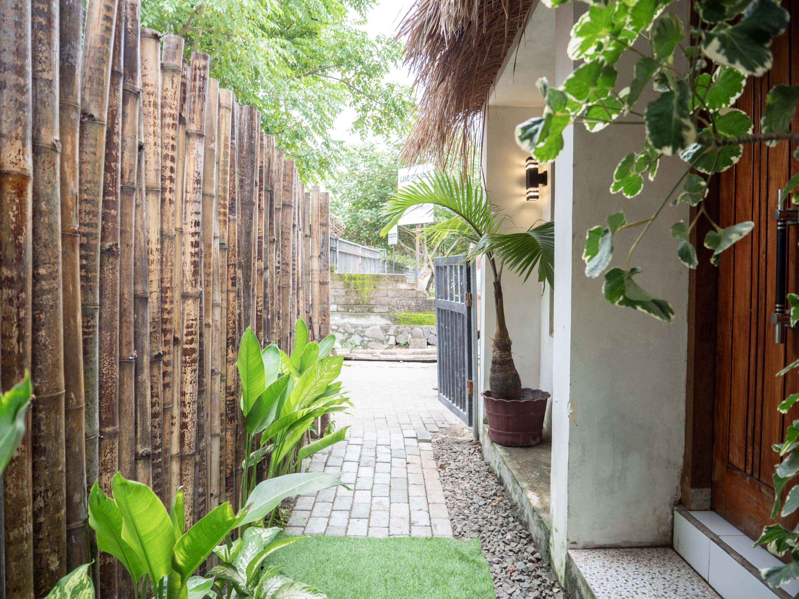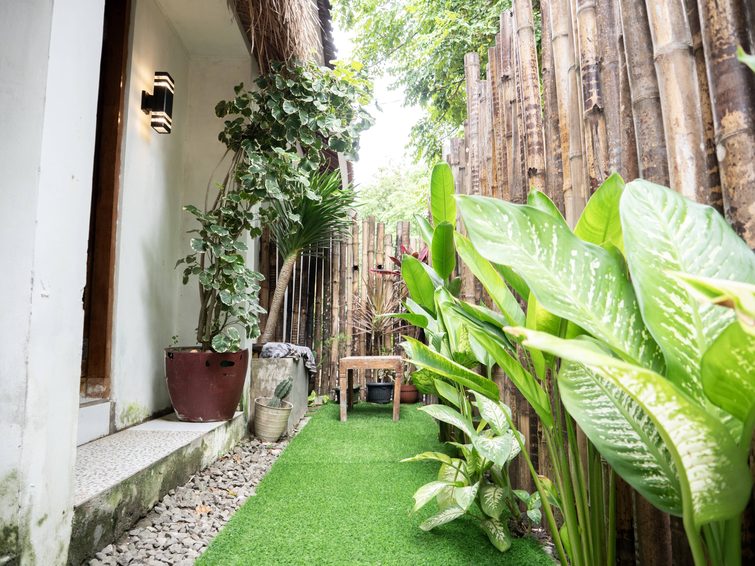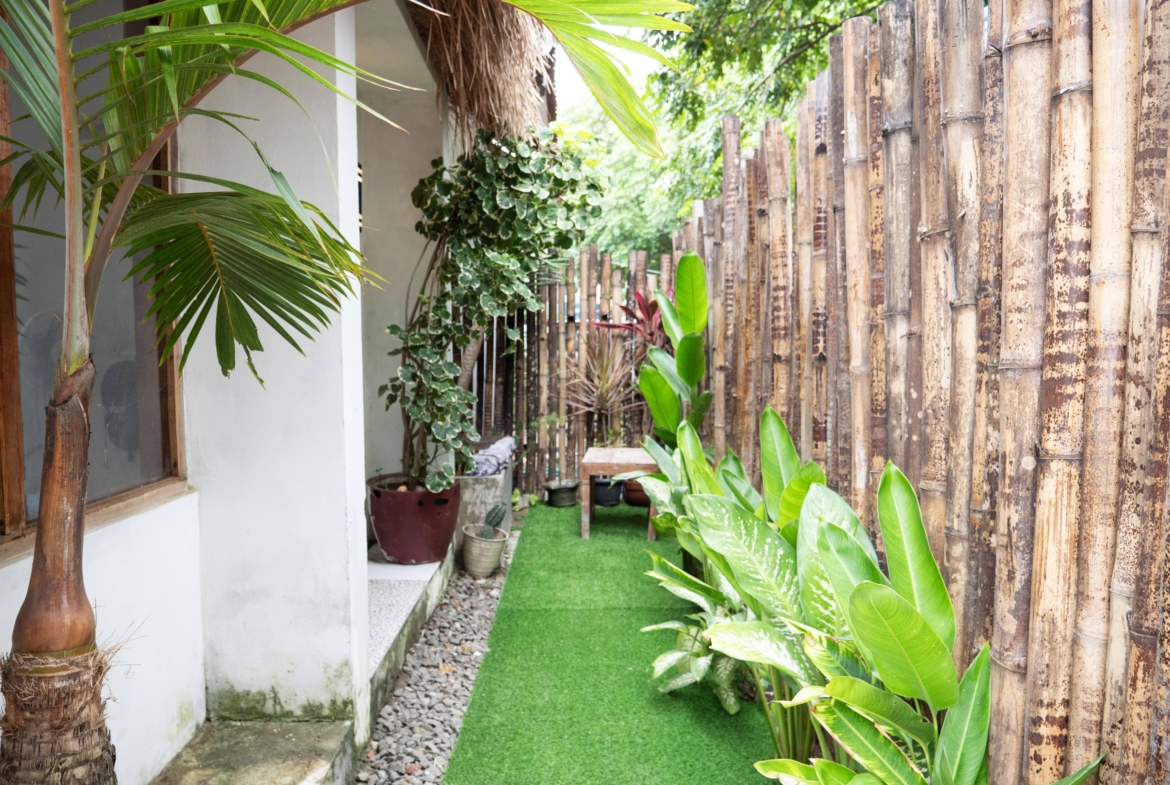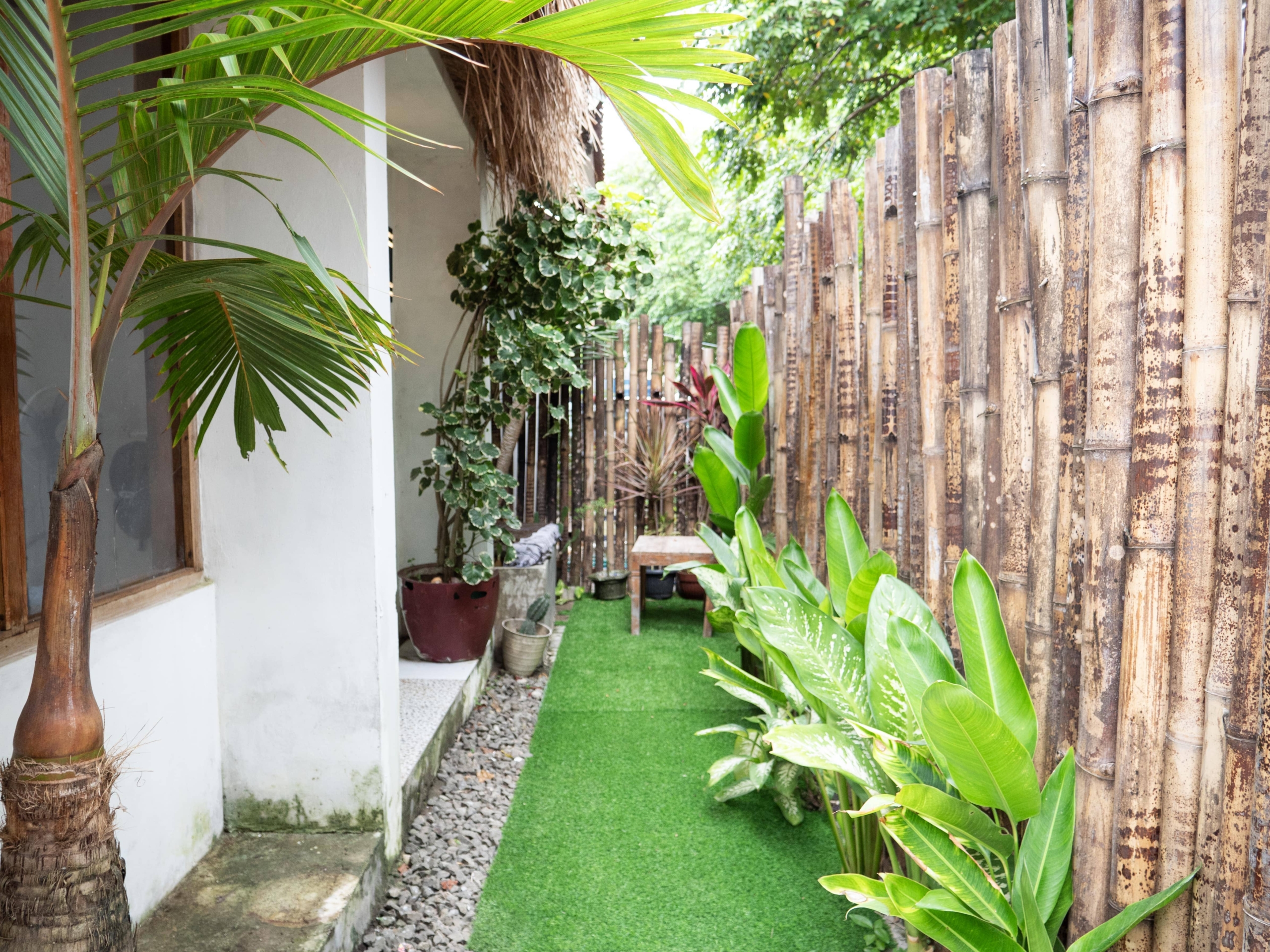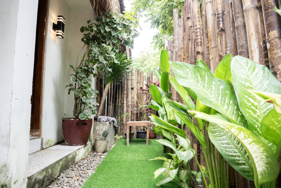 ✅ Peaceful garden surrounded by tropical plants and bamboo